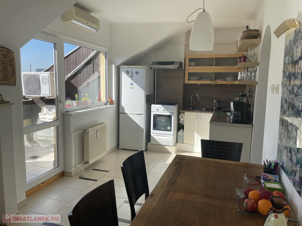 Belvárosban az Erkel ker szélén eladó egy bruttó 76 m2, hasznos 57 m2-el, egy egész és egy fél szobával, világos és tágas nagy nappalival rendelkező tetőtéri lakás!
